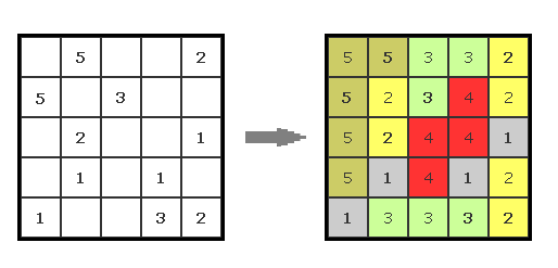 Fillomino to łamigłówka wywodząca się z Japonii, która polega na odtworzeniu granic między figurami w prostokątnym diagramie, z którego