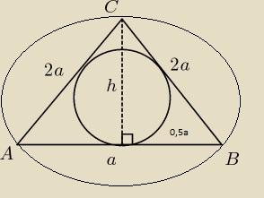 abcdefgh post贸w: 1255 | 2013-06-01 21:39:19![]() $h^2=4a^2-\frac{1}{4}a^2=\frac{15}{4}a^2$ $h=\frac{\sqrt{15}}{2}a$ $P=\frac{\sqrt{15}}{4}a^2$ $r=\frac{2P}{a+b+b}$ r=$\frac{2\frac{\sqrt{15}a^2}{4}}{5a}=\frac{\sqrt{15}}{10}$ $R=\frac{abc}{4P}$ $R=\frac{4a^3}{4*\frac{\sqrt{15}a^2}{4}}$ $R=\frac{4a}{\sqrt{15}}$ r+R=11 $\frac{\sqrt{15}a^2}{10}$+$\frac{4a}{\sqrt{15}}$=11 $\frac{15a+40a}{10\sqrt{15}}=11$ $55a=110\sqrt{15}$ $a=2\sqrt{15}$ |