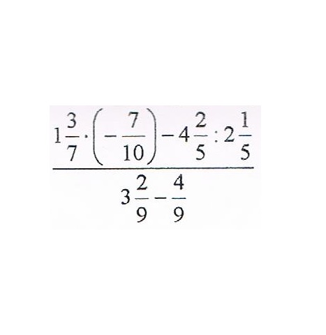 agus postĂłw: 2387 | 2013-12-19 19:38:28$\frac{\frac{10}{7}\cdot (-\frac{7}{10})-\frac{22}{5}\cdot \frac{5}{11}}{2\frac{11}{9}-\frac{4}{9}}$= = $\frac{-1-2}{2\frac{7}{9}}= \frac{-3}{\frac{25}{9}}=- \frac{3}{1}\cdot \frac{9}{25}=-\frac{27}{25}=-1\frac{2}{25}$ |