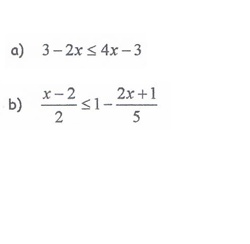 marcin2002 post贸w: 484 | 2013-12-19 20:39:27$3-2x\le4x-3$ $6\le6x$ $x\ge1$ $x\in$ $<1,\infty)$ |
