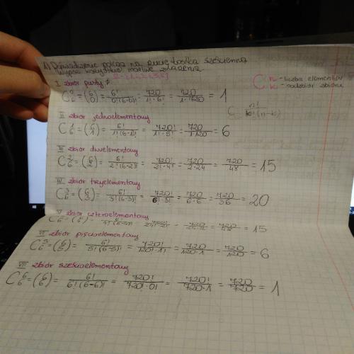 caroline93 post贸w: 3 | 2017-11-22 20:39:16Do艣wiadczenie polega na rzucie kostk膮 sze艣cienn膮. Wypisz wszystkie mo偶liwe zdarzenia. C ${n \choose k}$ |