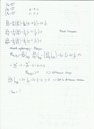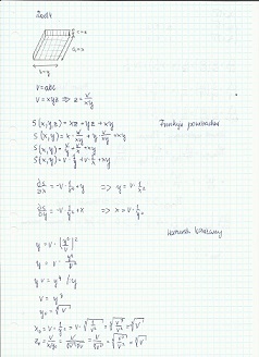 roksyk postów: 10 | 2013-05-28 20:13:04Substancja lecznicza o objętości v ma być opakowana prostopadłościanem o krawędziach x=a, y=b, z=c. Jakie wymiary musi mieć to opakowanie, aby powierzchnia pakowania była minimalna jeśli wiadomo, że opakowanie nie ma mieć trzech ścianek takich: a*b, a*c, b*c? ![]() ![]() Nie wiem jak mam dokończyć to zadanie muszę obliczyć powierzchnię minimalną? Wiadomość była modyfikowana 2013-05-28 21:17:46 przez roksyk |