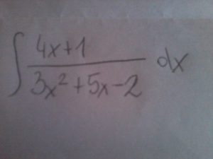 lukipuki postów: 29 | 2014-12-22 09:56:05Krok drugi Oto Twój przykład: $\int_ \frac{4x+1}{3x^{2}+5x-2}dx$ Krok trzeci Rozwiązanie leci:$\int_ \frac{4x+1}{3x^{2}+5x-2}dx = \int_ \frac{4x+1}{(3x-1)(x+2)}dx =\int_{\frac{A}{3x-1}}dx+\int_{\frac{B}{x+2}}dx$ Teraz po powyższej operacji rozcinamy pacjenta na dwie części $\frac{4x+1}{(3x-1)(x+2)} = \frac{A}{3x-1} + \frac{B}{x+2}$ Posługując się tak sporządzonym równaniem, należy wyliczyć wartości$ A$ i $ B$, dla których nasz pacjent po zszyciu wróci do pierwotnej formy. Czyli: $\frac{4x+1}{(3x-1)(x+2)} = \frac{A}{3x-1} + \frac{B}{x+2}$ $4x+1 = A(x+2) + B(3x-1)$ Podstawiamy za $x$ wartości $-2$ i wyliczamy $B$, a następnie $\frac{1}{3}$ i wyliczamy $A$: $\left\{\begin{matrix} {-7 = -7 B} \\ {\frac{7}{3} = \frac{7}{3} A}\end{matrix}\right.$ $\left\{\begin{matrix} {B = 1} \\ {A = 1} \end{matrix}\right.$ $\int_{\frac{1}{3x-1}}dx+\int_{\frac{1}{x+2}}dx = \frac{1}{3}\int_{\frac{3}{3x-1}}dx+\int_{\frac{1}{x+2}}dx$ Korzystając z: $\int_\frac{[f(x)]\'}{f(x)} = ln|f(x)| + C$ Obliczamy wartość całki $\frac{1}{3}\int_{\frac{3}{3x-1}}dx+\int_{\frac{1}{x+2}}dx = $ $\frac{1}{3} ln|3x-1| + ln|x+2| + C$ Krok czwarty Bądź na regulamin otwarty. Pamiętaj, że ktoś wkłada dużo pracy w to forum, a regulamin to nie kodeks cywilny. Wiadomość była modyfikowana 2014-12-22 09:58:28 przez lukipuki |