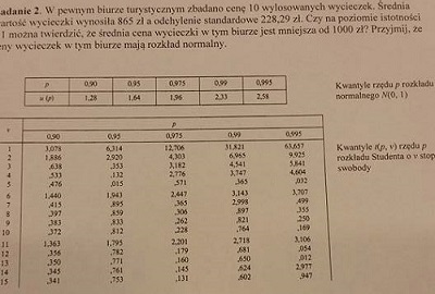 janusz78 post贸w: 820 | 2016-01-10 20:31:23To zadanie nie robi analogicznie, bo dotyczy ono weryfikacji hipotezy 艣redniej. Przyjmujemy wsp贸艂czynnik istotno艣ci testu $\alpha = 0$ |