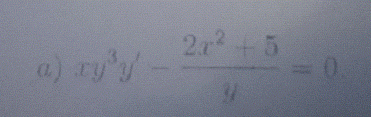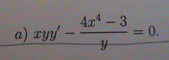 janusz78 postów: 820 | 2016-01-24 20:15:06Nie, bo rozdzieliliśmy zmienne $xy \frac{dy}{dx} = \frac{4x^4 -3}{y} |\cdot y$ $ xy^2\frac{dy}{dx}= x^4 -3|:x $ $ y^2 \frac{dy}{dx} = \frac{x^4 -3}{x}|\cdot dx $ $ y^2 dy = \frac{x^4-3}{x}dx, \ \ x\neq 0.$ |