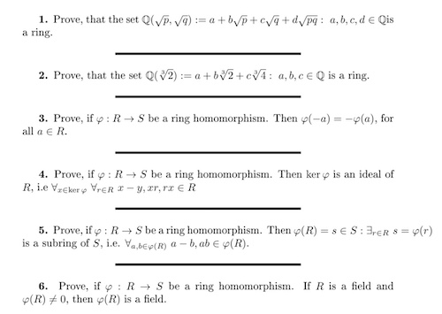 kubano postów: 1 | 2020-12-21 16:38:54Witam, mam problem z rozwiązaniem zadań ze zdjęcia. Nie wiem jak mam je udowodnić aby to miało sens. Chodzi o pierścienie w algebrze. Jeśli ktoś byłby w stanie mnie naprowadzić jak je powinienem rozwiązać to byłbym bardzo wdzięczny. Z góry dziękuje. ![]() |