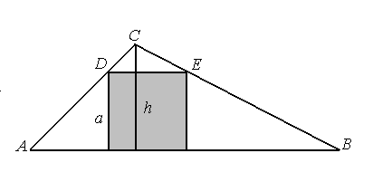 Trójkąt DEC jest podobny do trójkąta ABC, więc stosunek wysokości do podstawy w obu trójkątach jest jednakowy.