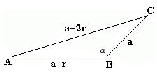 marcin2002 post贸w: 484 | 2012-03-29 16:51:40ZADANIE 3 OBLICZENIA a ; a+r ; a+2r - d艂ugo艣ci bok贸w $a+a+r+a+2r=21 \Rightarrow 3a+3r=21 \Rightarrow r=7-a$ ZATEM D艁UGO艢CI BOK脫W TR脫JK膭TA MAJ膭 a ; 7 ; 14-a ZAPISUJEMY TWIERDZENIE COSINUS脫W $|AC|^2=|AB|^2+|BC|^2-2\cdot|AB|\cdot|BC|cos\alpha$ $(14-a)^2=a^2+7^2-14a\cdot(-0,1)$ $196-28a+a^2=a^2+49+1,4a$ $29,4a=147$ $a=5$ a=5 b=7 c=14-5=9 BOKI TR脫JK膭TA MAJ膭 D艁UGO艢CI 5,7,9 |