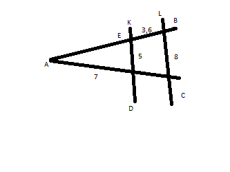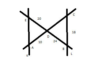 kropekdk1 postów: 4 | 2018-05-19 14:35:43wiadomo że K||(chyba)L. korzystając z danych na rysunku oblicz długość odcinków AE i CD a) ![]() b) |