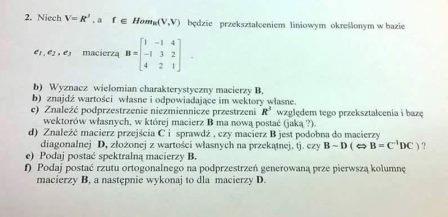 glodomonia postów: 1 | 2017-01-22 15:42:25Cześć, potrzebuję pomocy w następującym zadaniu z algebry liniowej: ![]() Jedyne co potrafię zrobić, to zacząć 2 pierwsze podpunkty, potem już gorzej :/ Będę bardzo wdzięczna za pomoc :) |