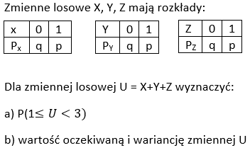 chiacynt postów: 749 | 2020-06-02 17:15:14Znaleźć zbiór wszystkich możliwych wartości zmiennej losowej $ U $ Obliczyć jej rozkład prawdopodobieństwa. Z rozkładu prawdopodobieństwa - prawdopodobieństwo zdarzenia $ \{1 \leq U \leq 3\} $ oraz wartość oczekiwaną i wariancję. |