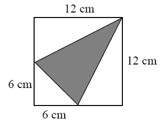 Pole trójkąta zacieniowanego równe jest 144 - 2 · 36 - 18 = 144 - 90 = 54 cm2
