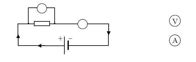 Uzupełnij schemat obwodu elektrycznego, wpisując właściwe symbole przyrządów.