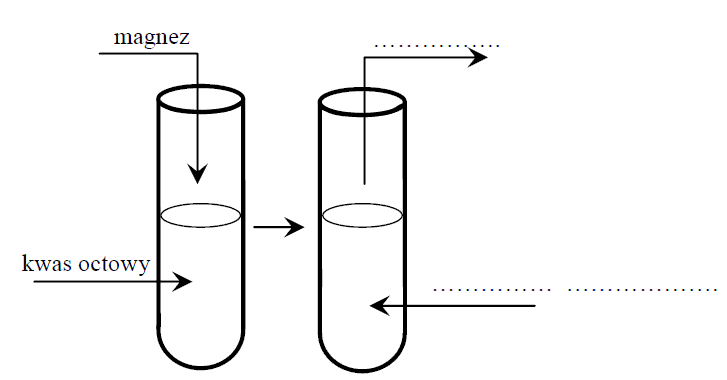 W probówce znajduje się roztwór octanu magnezu, a wydzielający się gaz to wodór