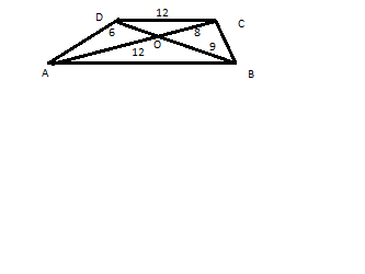 tumor post贸w: 8070 | 2018-05-19 19:56:11Tr贸jk膮cy DOC i ABO s膮 podobne. Widzimy to z kryterium bkb (bok k膮t bok), boki s膮 bowiem w proporcji $\frac{8}{12}=\frac{6}{9}$ natomiast k膮ty wierzcho艂kowe AOB i COD s膮 r贸wne. Skoro tr贸jk膮ty s膮 podobne, to k膮t BAC jest r贸wny ACD, st膮d $AB||CD$ Ponadto $\frac{8}{12}=\frac{6}{9}=\frac{12}{|AB|}$ |
