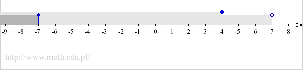 $ (-\infty; 4] \backslash [-7; 7) = (-\infty; -7) $