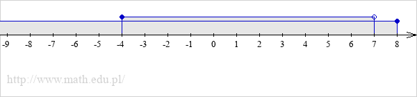 $ [-4; 7) \backslash (-\infty; 8] = mptyset $