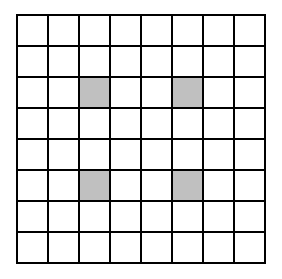 Zatem kandydatami do usunięcia są zacieniowane pola będące częścią wspólną obu rysunków. Są takie cztery pola pokazane na rysunku niżej.