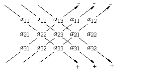 regułą Sarrusa. Dopisujemy z prawej strony raz jeszcze pierwszą i drugą kolumnę i następnie tworzymy
