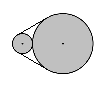 Zadanie 230 Rozwiązanie Jaka jest najmniejsza długość linki potrzebnej do owinięcia dwóch kół stycznych zewnętrznie o średnicach odpowiednio 6 i 18?
